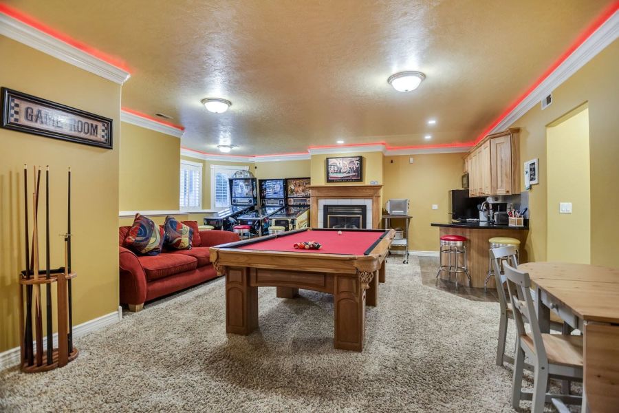 You can’t beat the bang for your buck with this warm & cozy daylight ground level mother-in-law suite. Tons of space, beautiful natural landscapes, luxurious bedrooms and bathroom, small kitchen, cool pinball machines, theater room, hot tub and much more!!!