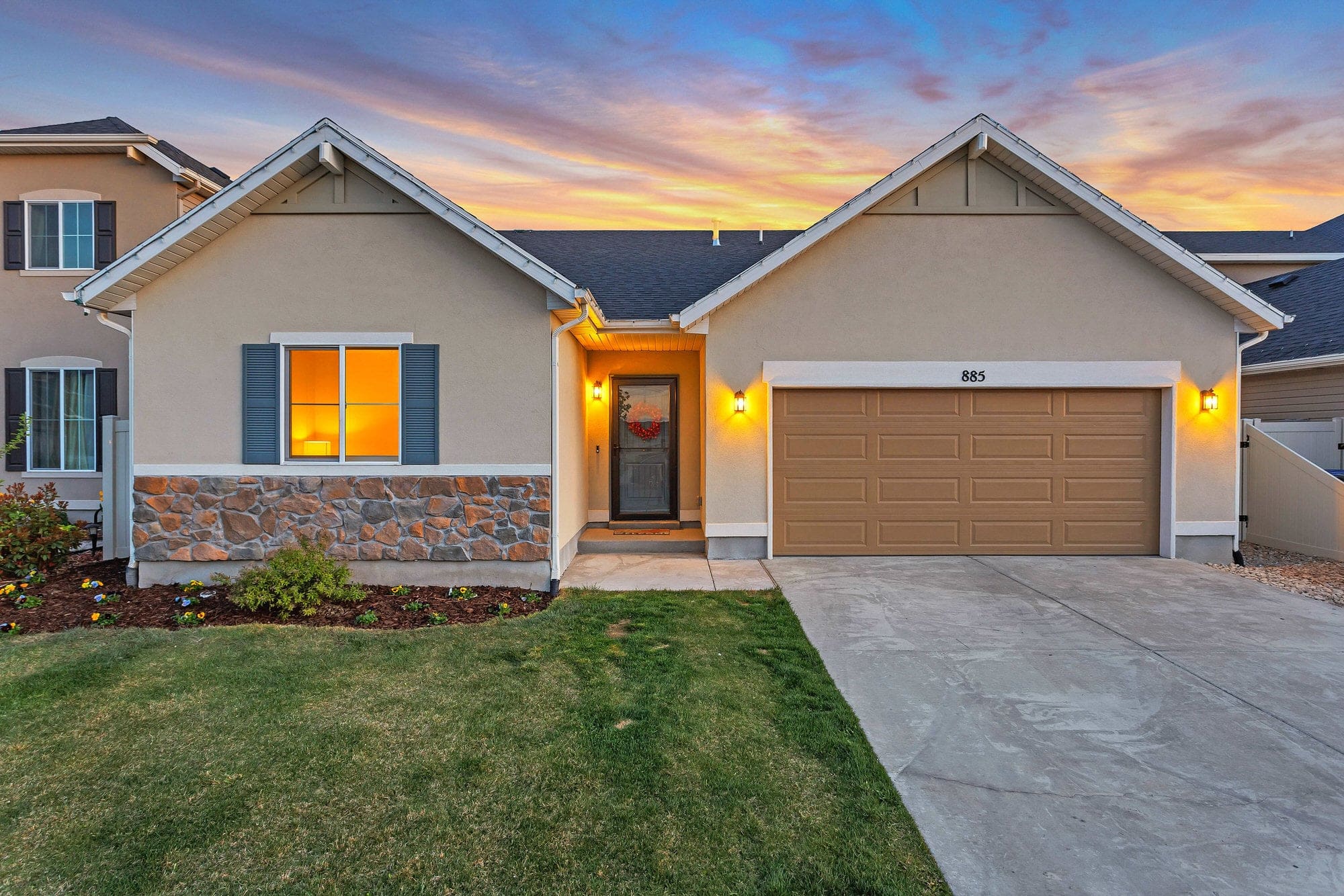 This better than new house has all of the amenities you are looking for. The sprawling open concept features a large granite kitchen island, perfect for entertaining. Make the most of your outdoor space with the covered patio, featuring 220 for a hot tub and looking out on to your turfed back yard. Never do yard work again, stays green all year long. Amazing Splash pad, multiple pools and playgrounds all within walking distance. Legacy trail also connects with the community park. Retire to your Master suite after a long day with the huge soaking tub and separate shower. Plenty of storage with attic access from the garage with a huge loft space.